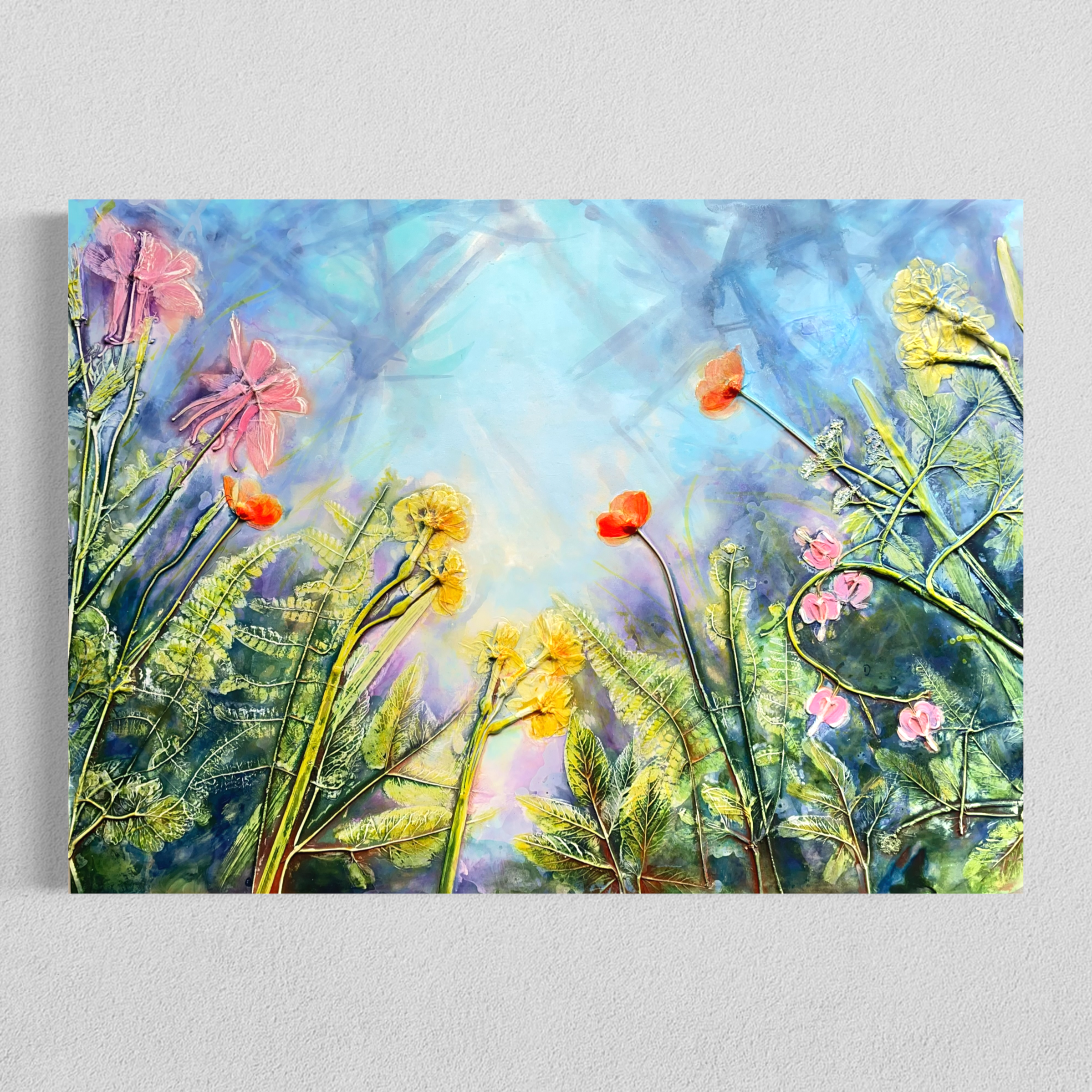 Melissa Mulder currently lives in Hamilton, Ontario and works full-time from her home studio. Mel’s first vocation was one surrounded by flowers. The scent, life span, colour, variety, fragility and painterly qualities of flowers were something she studied intimately by way of formal education and more than 25 years of working with flowers. One would say that she painted with petals, which has now evolved to her current vocation and art form as a Relief/Fresco-Secco-esque Artist, a new extension of the flowering world.